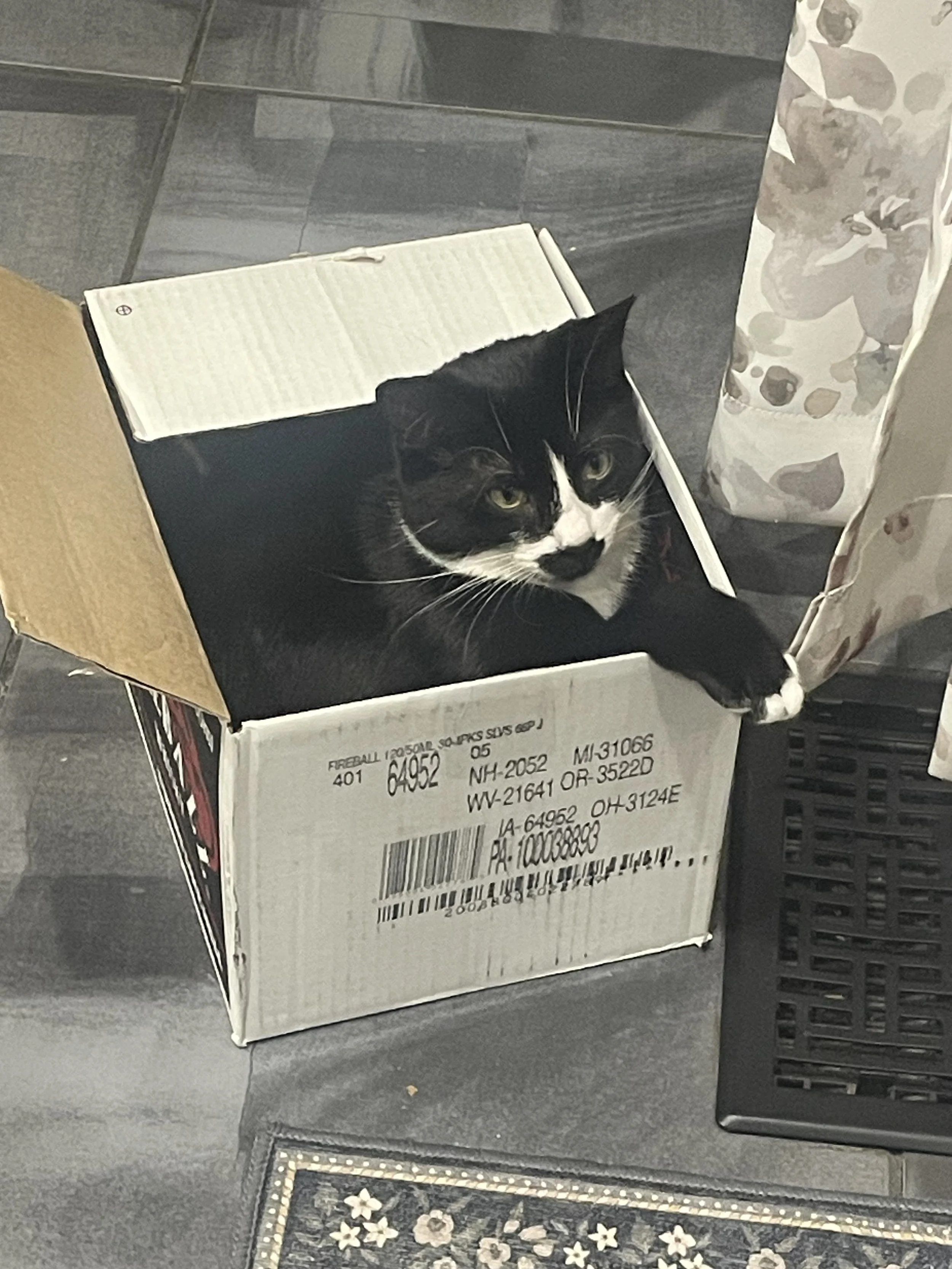 Jeremiah is embracing the comforts of indoor life in his own unique way. He’s especially drawn to boxes—the simpler, the better—and has claimed his cat tree as his personal lookout spot. Whether he’s perched up high or tucked into a cozy corner, Jeremiah is clearly finding his safe spaces and settling in at his own pace.